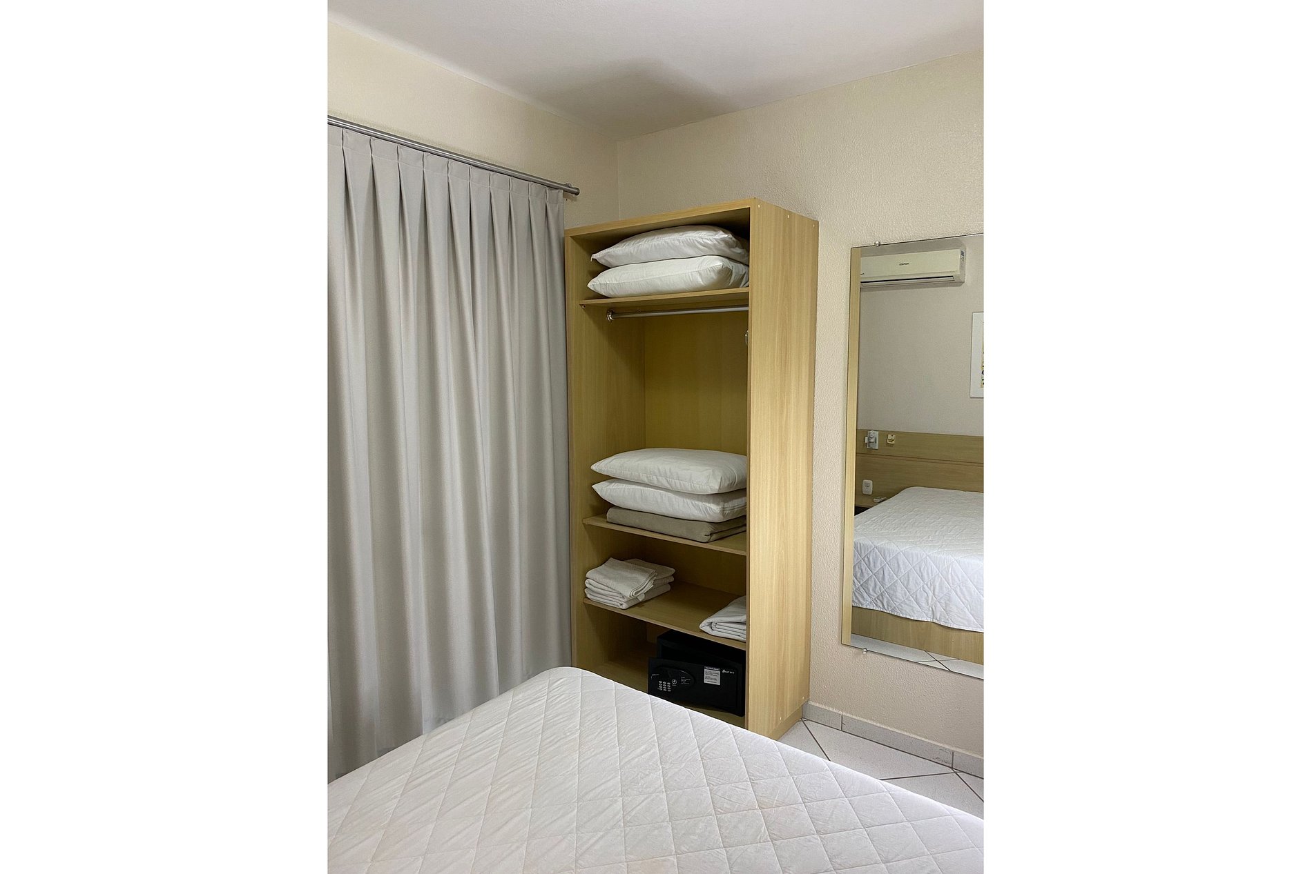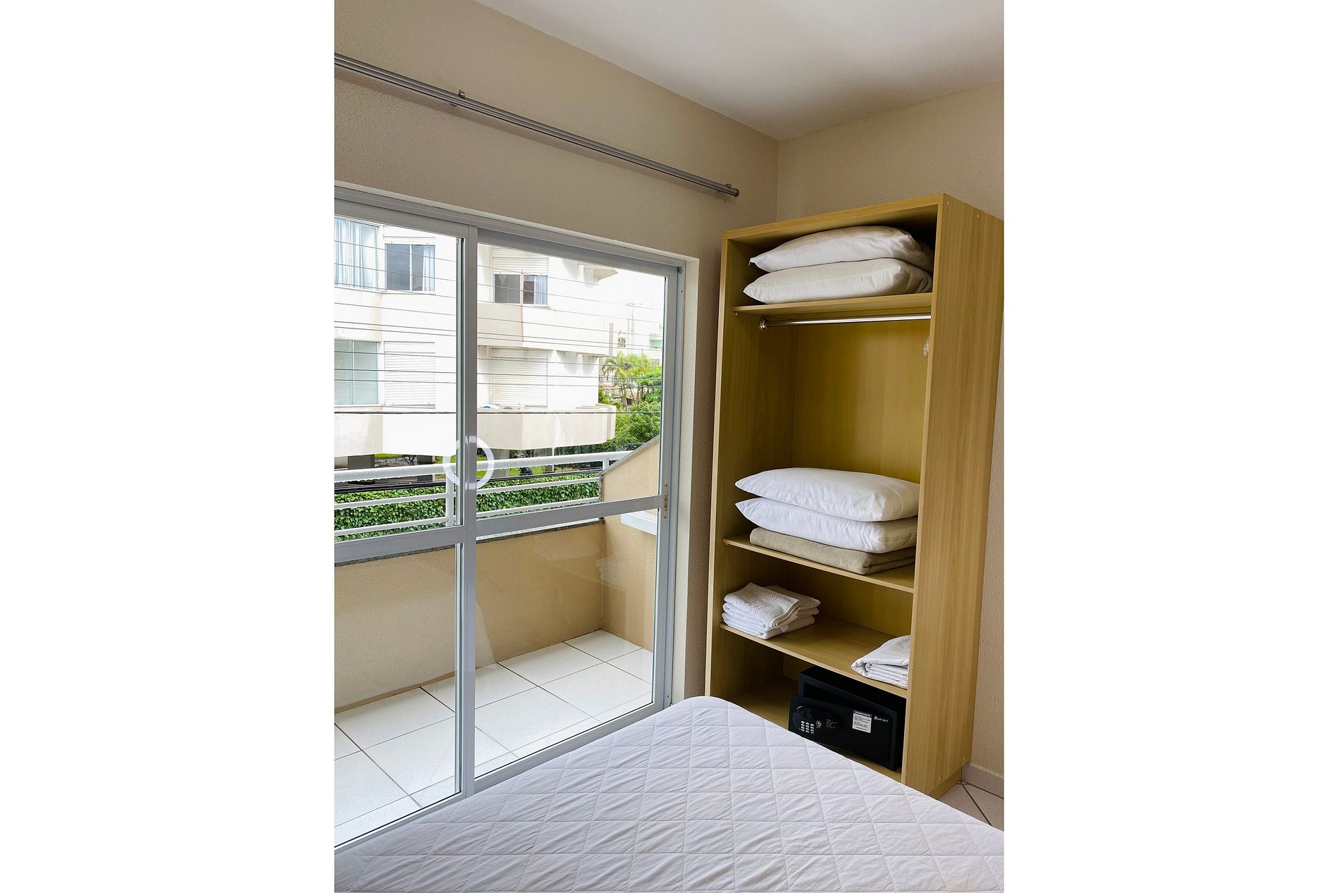 O apartamento dispõe de um cofre com senha, Wi-Fi e um kit de praia com cadeiras e guarda-sol.