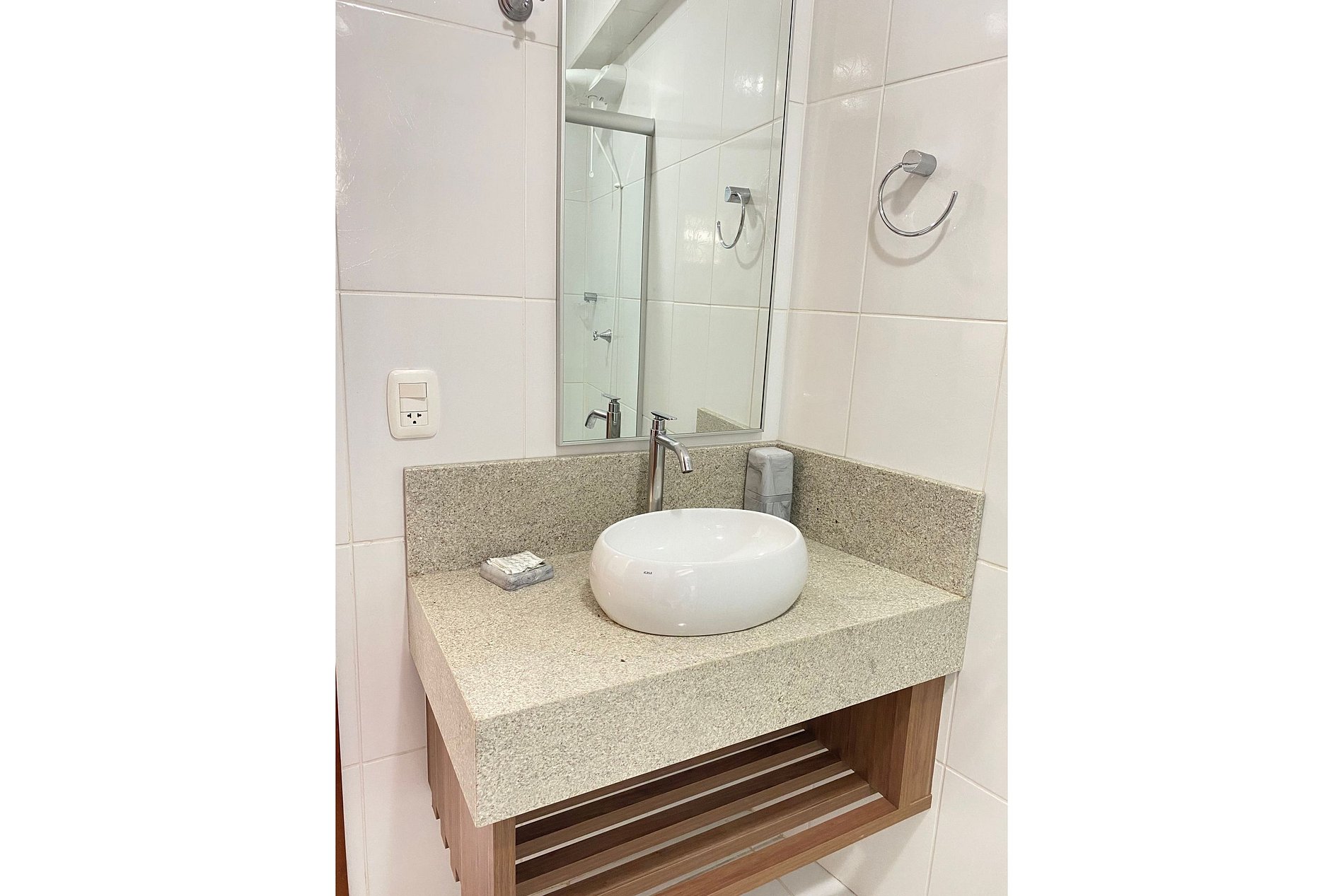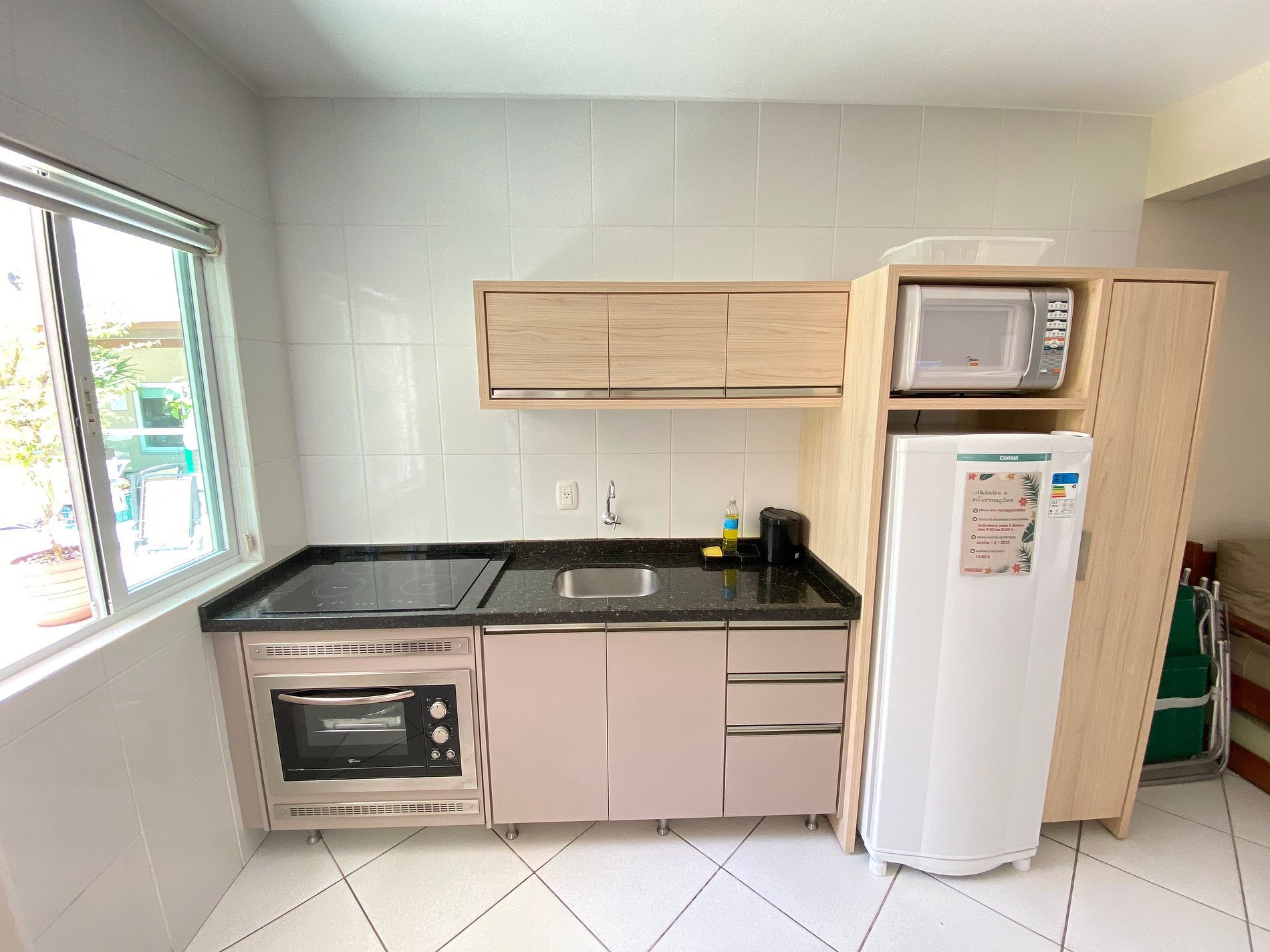 A cozinha é equipada com todos utensílios necessários para sua estadia, como forno elétrico, cooktop, micro-ondas, sanduicheira, liquidificador e cafeteira.. Também é oferecido aos hóspedes roupas de cama e banho, e a cada três dias é realizada a troca, para sua maior comodidade.