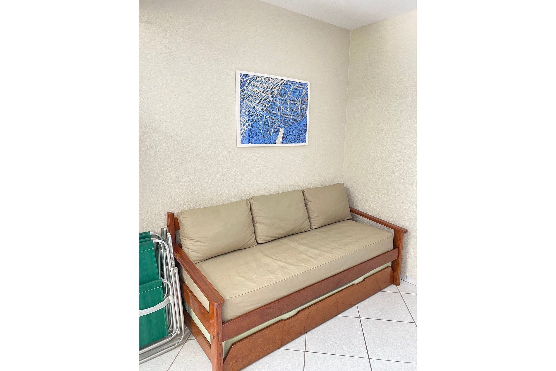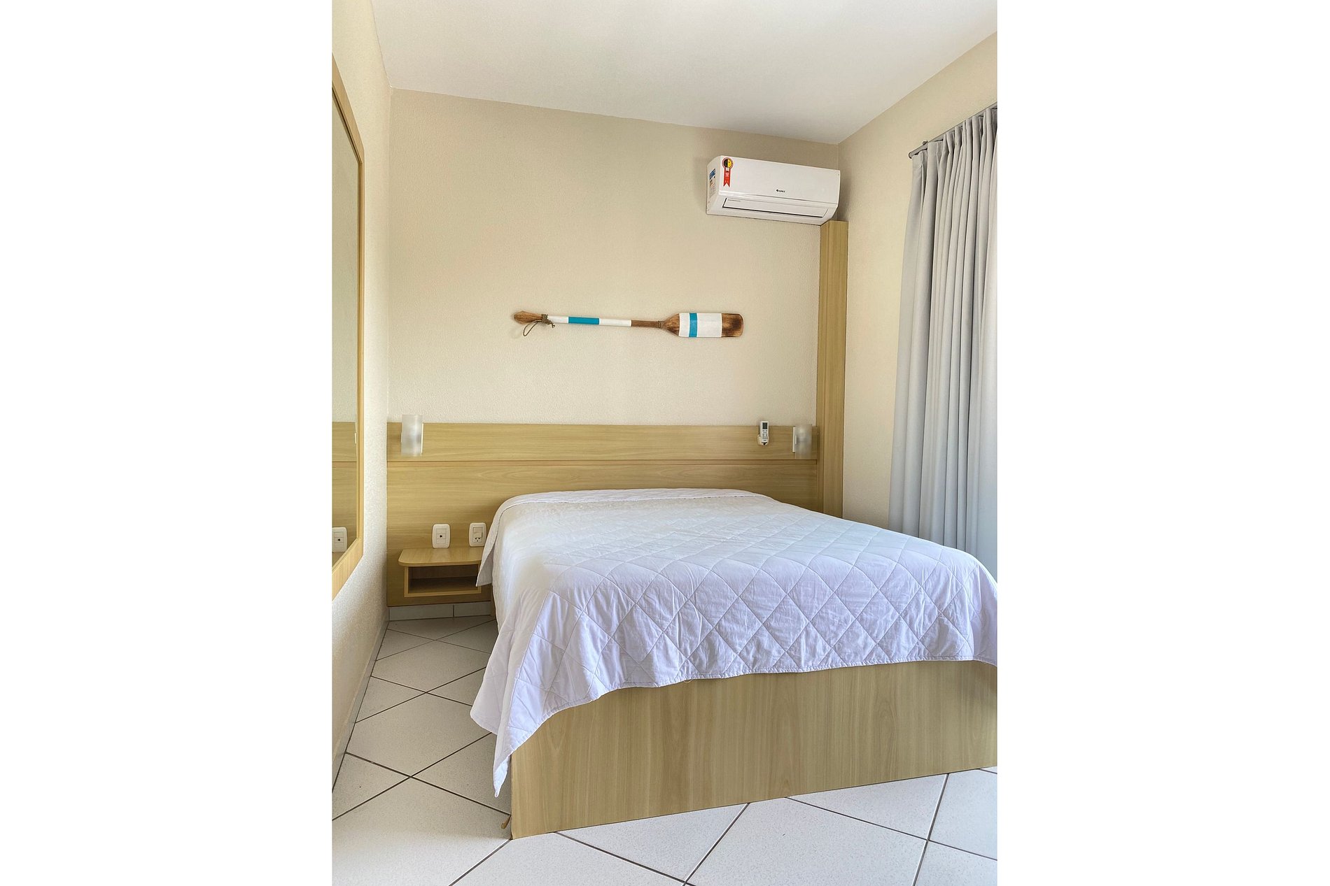O espaço dispõe de um quarto de casal com ar condicionado Split e uma bicama na sala de estar, que acomoda até duas pessoas.