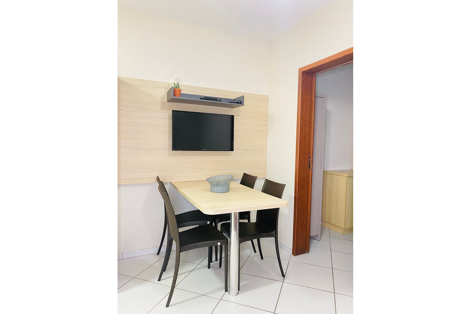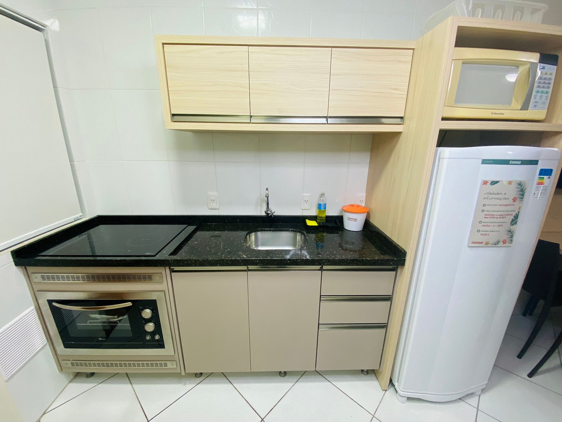 A cozinha é equipada com todos utensílios necessários para sua estadia, como forno elétrico, cooktop, micro-ondas, sanduicheira, liquidificador e cafeteira.. Também é oferecido aos hóspedes roupas de cama e banho, e a cada três dias é realizada a troca, para sua maior comodidade.