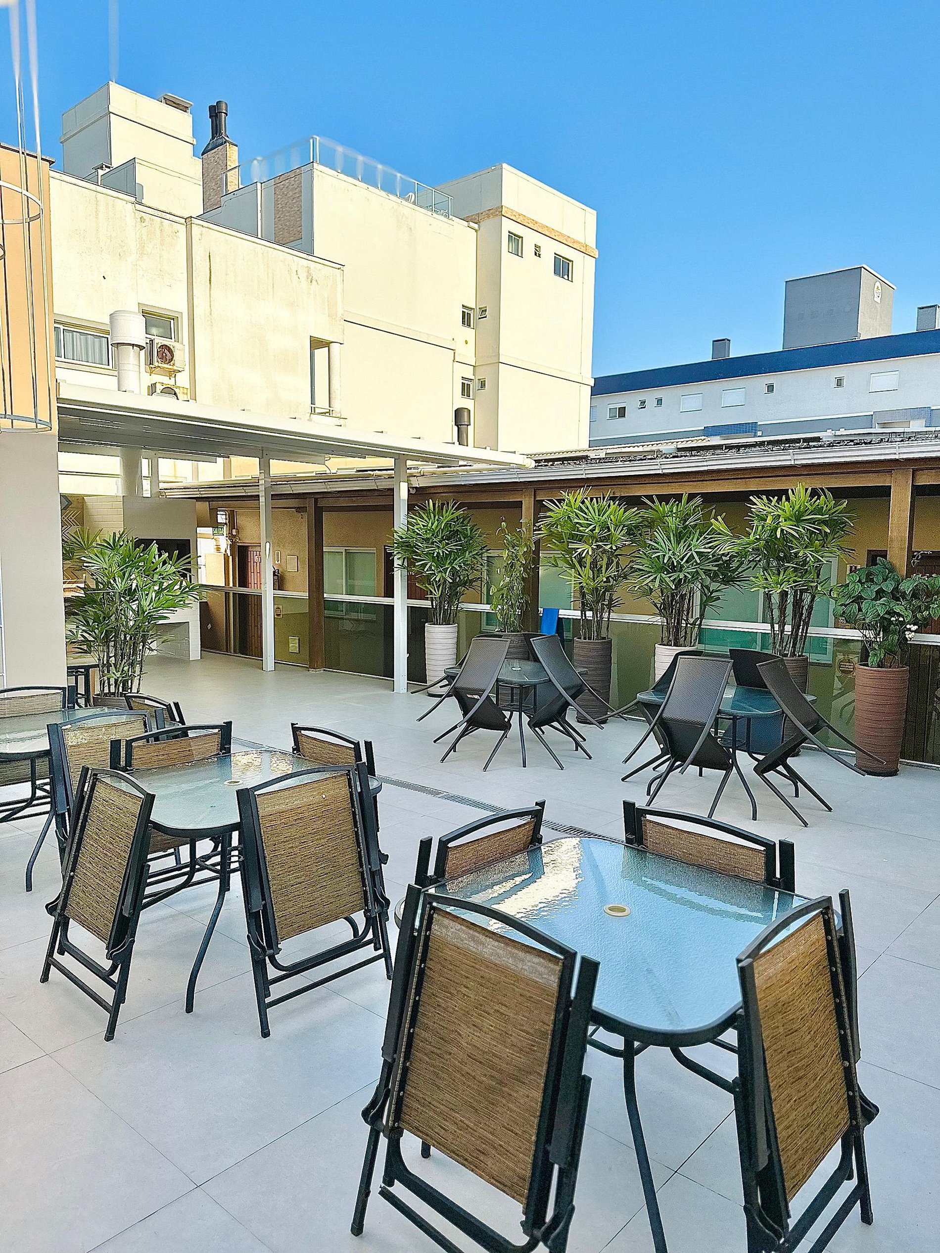 O espaço conta com uma área comum acessível aos hóspedes, com mesas ao ar livre para aproveitar dias de sol, onde encontram-se disponíveis churrasqueiras móveis para desfrutar de ótimas refeições.