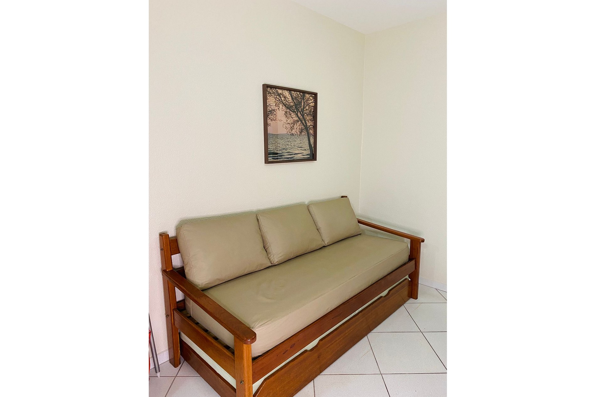 O espaço dispõe de um quarto de casal com ar condicionado Split e uma bicama na sala de estar, que acomoda até duas pessoas.